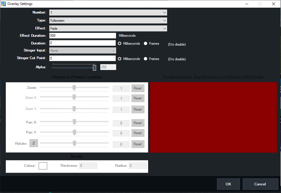 完成后,点击确定。现在,当您在任何输入源上点击该叠加层的数量时,该源将显示为您在主输出窗口中选择的任何内容。它将匹配您设置的过渡设置、定位和持续时间。